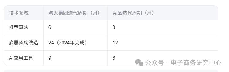 尽管加大云计算、AI投入,但技术成果未充分赋能业务(如个性化推荐效率低于抖音、拼多多);内容电商布局滞后,淘宝直播GMV占比及商业化效率显著低于行业标杆。